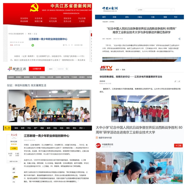 示范引领,构建职普融通服务矩阵。作为南京工业职业技术大学深化产教融合、履行社会服务职能的重要窗口,该中心不仅面向青少年提供职业启蒙服务,还成功承接“第八届中国职教书记校长领导力论坛”“天津市职业院校教学管理骨干培训班”参观来访等重要任务,整个暑期接待各级职教界领导与专家、一线教师超300人次。其先进的教学设施、科学系统的课程体系与创新的运营模式,不仅成为学校展示职业教育改革成果的重要名片,更为全国职业院校推进资源开放共享、深化跨区域教育合作提供了可借鉴的实践样本,有力推动职业教育与基础教育协同发展,助力构建高质量教育体系。相关活动获得《中国日报网》《中共江苏省委新闻网》《新华日报》《现代快报》《荔枝新闻》和江苏电视台等多家权威媒体报道,社会影响力持续提升。