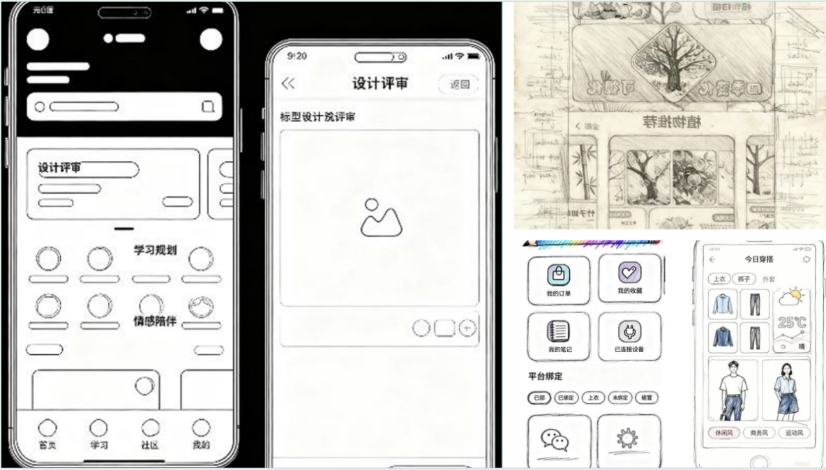 图1 学生借助AI赋能完成的产品原型设计手稿
