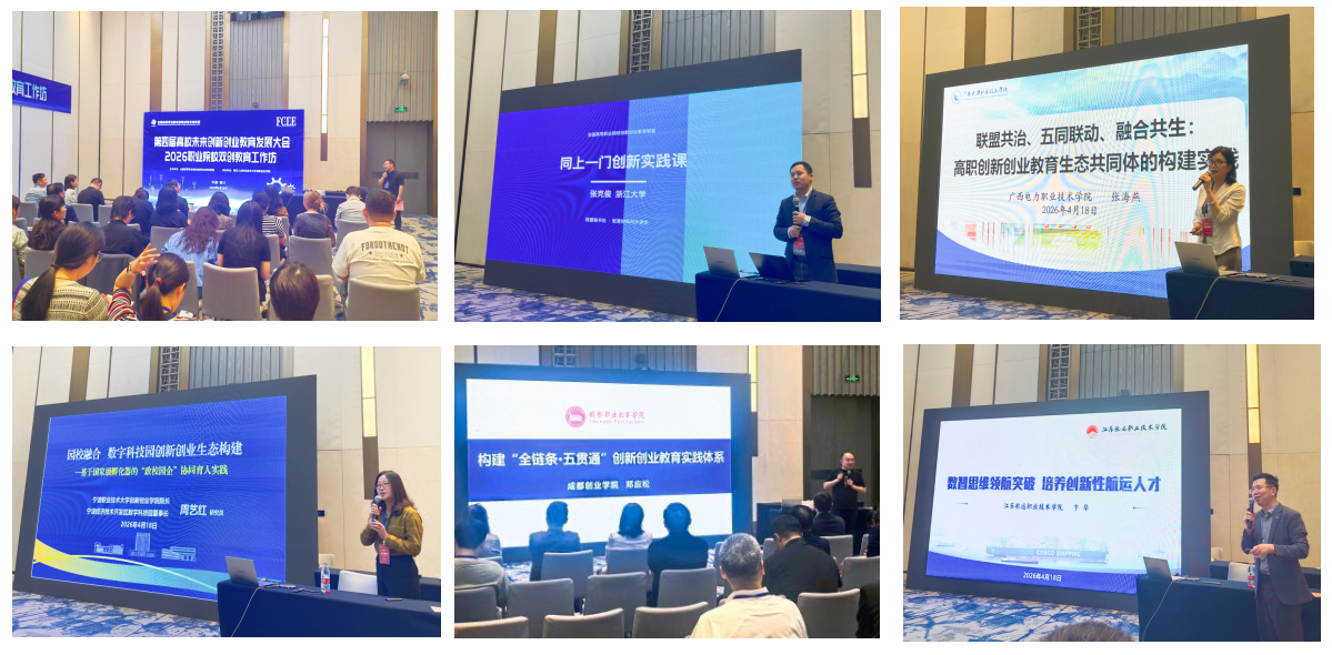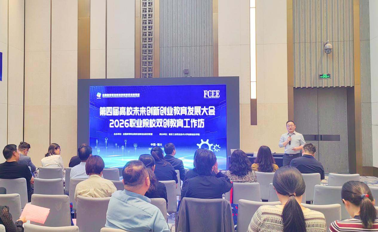 4月18日至19日,第四届高校未来创新创业教育发展大会在银川成功举办。本次大会构建了“宏观思考、现实案例、设计创新、产教融合”的全链条内容体系,设置四大主旨分享与六大平行工作坊,内容层层递进、逻辑环环相扣。大会“产教融合”主旨分享环节由纪海波主持。本次职业院校双创教育工作坊作为大会核心平行论坛之一,由全国高职院校创新创业教育联盟全程牵头组织实施。来自北京大学、浙江大学、同济大学、中国海洋大学、重庆大学、厦门大学、中央民族大学、北方民族大学等全国百余所高校的400余名专家学者、一线教师代表齐聚银川,共探人工智能时代高等教育创新发展新机遇与新路径。我校参会教师也在交流中拓宽视野、积累经验,为后续双创工作开展储备了优质资源。